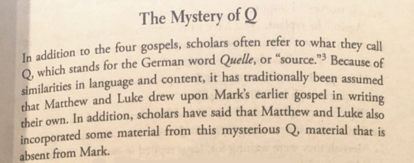 Another thought floating about, is the notion of the Quelle or "Source", which scholars believe to be a "collection of Jesus Sayings".