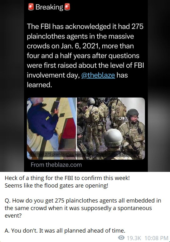 Why is an FBI agent flashing his badge and wearing a Trump MAGA hat? The camera footage shows that a lot of the "FBI" agents and assets orchestrated the whole thing. Many people allege that the FBI orchestrated the Jan 6 capital shenanigans to create the distraction. The picture above was taken from the 40,000+ hours of capital security camera footage that took 3 years to get released. That footage proved a lot of people who were arrested were innocent, and many were released after several years of imprisonment. How is it, that those who were arrested on Jan 6, did not get a trial? Some sat in prison for over a year, without being told what their crime was. This is a throw-back to the days of kings imprisoning their enemies for no reason. The 6th Amendment states: