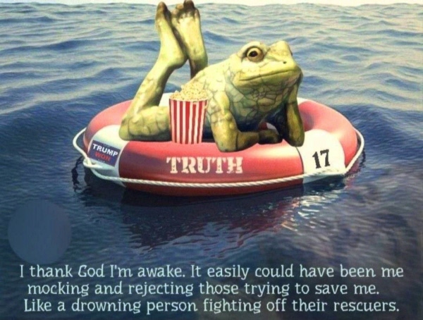 If you refuse to let my people go, I will send a plague of frogs on your whole country. The Nile will teem with frogs. They will come up into your palace and your bedroom and onto your bed, into the houses of your officials and on your people, and into your ovens and kneading troughs. (Exodus 8:2-3) Anons are likened to "An Army of Frogs" in the manner mentioned in Exodus. army of Anons, Tens of Millions strong.