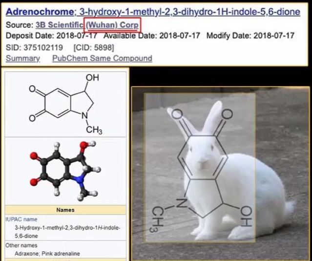 Adrenochrome is nicknamed White Rabbit due to the shape of its chemistry.