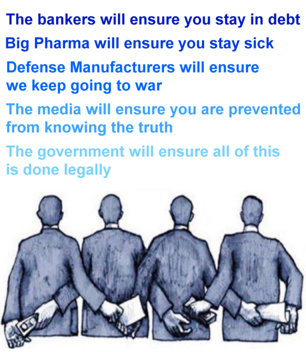 A quick overview: Much like the Mafia you are familiar with in the USA, who infiltrates or gains blackmail over police chiefs, mayors, congressmen, union leaders, judges etc. Once they have these authorities compromised, the Mafia can do their illegal activity with impunity because they have the right people, in the right places. They then profit greatly and build their wealth at the expense of the people. The U.S. Mafia did not create this method, they copied it. They report to the Global Mafia that uses the same tactics, but on a much larger and global scale, and they have been around for centuries. (21 Seconds) Download this video: Right Click and select "Save Link As..." They have infiltrated royalty, the Jesuits, Free Masons, the Vatican, all major corporations, and most governments around the world. For an in-depth historical overview of this Global Mafia, sometimes referred to as a Cabal, watch the two videos found here: