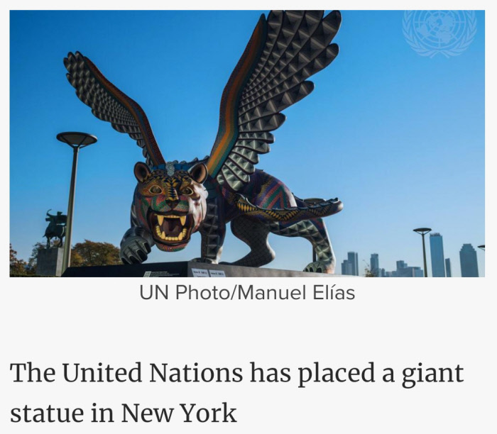 And it seems the United Nations may be a part of this, too. Now, they are putting it right in our faces. Why would the U.N. erect such a statue? What could this statue possibly signify? Why not erect a statue that signifies world peace and love? Daniel 7:3-4 Four great beasts, each different from the others, came up out of the sea. The first was like a lion, and it had the wings of an eagle. I watched until its wings were torn off and it was lifted from the ground so that it stood on two feet like a human being, and the mind of a human was given to it.