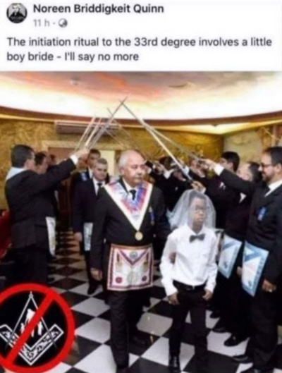 ![]() Free Mason Symbol Compass & Square MasonsThe Cabal's method is to infiltrate organizations, corporations, and governments very slowly over long periods of time. The Cabal uses sex, Adrenochrome, and pedophilia to blackmail, bribe, and control. And they have done so for centuries. One example is the Free Masons, who probably started out as a good organization, and for all practical purposes, they still are. However, all indications are that the Cabal infiltrated them centuries ago, and they always structure organizations in the form of a pyramid. The innocent and good people are at the bottom, the first layer the Cabal hides behind. These people do good works and make up 90% of the organization. These good works allow the organization to remain innocent in the public eye. As you move up the organizational chart, each layer or degrees has fewer people. Rising up through each layer, the people are more and more evil, orchestrating their dark plans. The masons have 33 degrees. 33 is the highest you can go. When a mason is initiated into the 33rd degree, they have a ceremony: