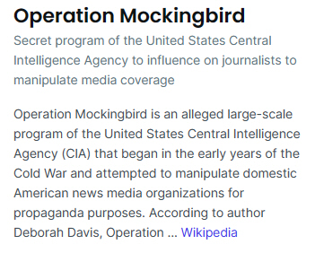 Operation Mockingbird MainStream Media (MSM) For the Cabal to execute their illusions onto the masses, they needed to infiltrate, purchase, and control all of the major media corporations. This way, they can set their corrupt narrative in the minds of the people and control them.