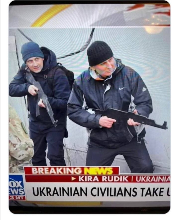 Staged News Feeds? Take a close look at the weapons these Ukrainian civilians are holding... Wooden guns? The Props Department couldn't find real guns?