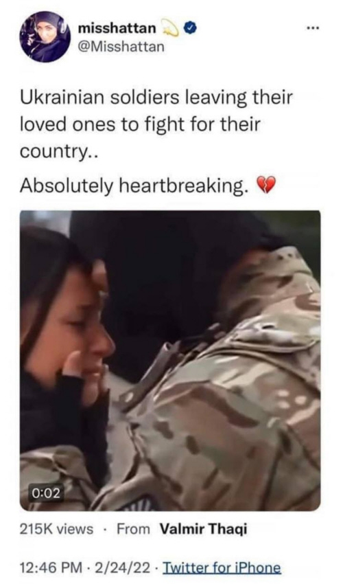 Check out the tweet above By the date shown, this had 215,000 views It's a very sad picture- a soldier saying goodbye However, it's another Cabal lie.