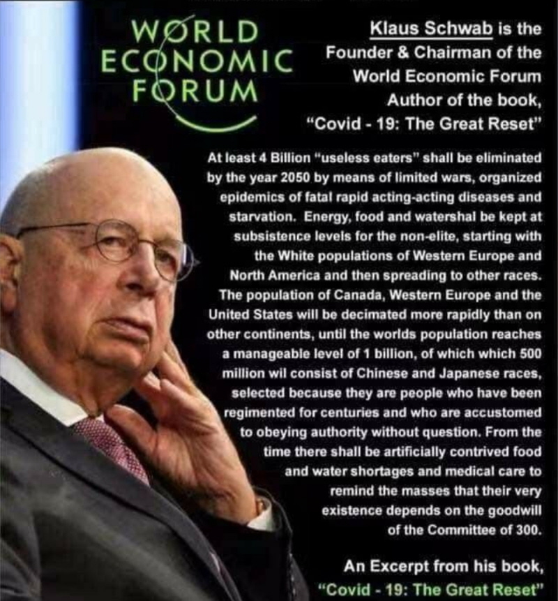 New World Order - The Great Reset if they get their way, will depopulate the world. Meet Klaus Schwab, the founder and chairmen of the World Economic Forum:
