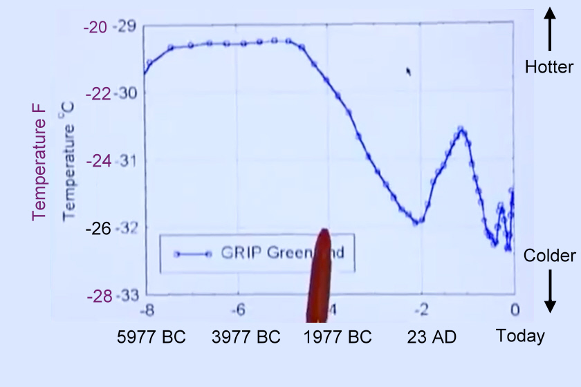 Four thousand years ago, the earth was 6 degrees F warmer than it is now. (81 seconds) Download this video: Right Click and select "Save Link As..." (3 minutes 41 seconds) Download this video: Right Click and select "Save Link As..."