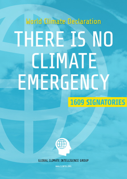 www.CLINTEL.org (Climate Intelligence) is an independent foundation established in 2019 by Emeritus Professor of Geophysics Guus Berkhout. CLINTEL's main objective is to generate knowledge and understanding of the causes and effects of climate change as well as the effects of climate policy. Over 1,600 noted scientists have signed the following declaration: