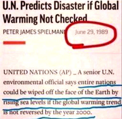 The United Nations' predictions never came true. And trillions of dollars have been spent on this designed fear. But what about all of the scientific data that has been presented? What about all of the graphs showing temperatures rising? National Oceanic and Atmospheric Administration