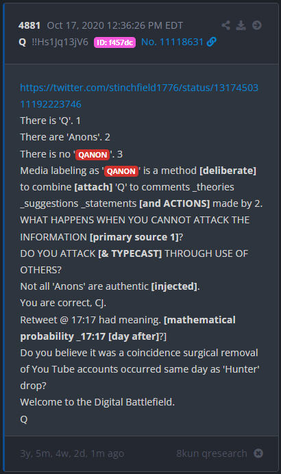 The mainstream media coined the term "Qanon." And Q addresses this: