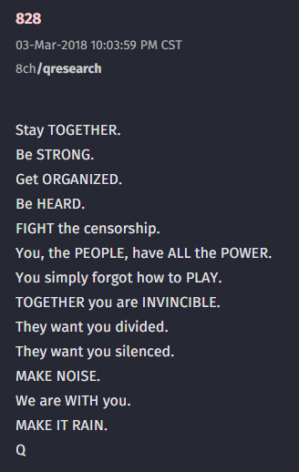 When Anons would post their memes, big tech would activate, and find and remove those memes.
