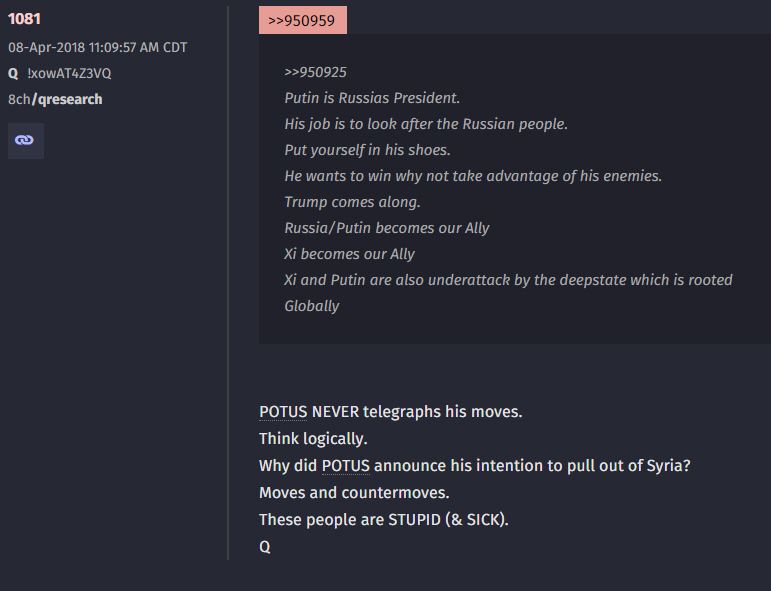 North Korea's Kim Jung Ung, China's Xi Jinping, and Russia's Vladimir Putin, and the five of them are working together to take down the Cabal.