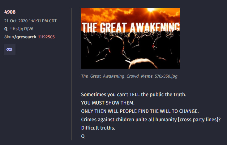 that it would get the normies to at least pause, and hopefully think, and possibly... wake up.