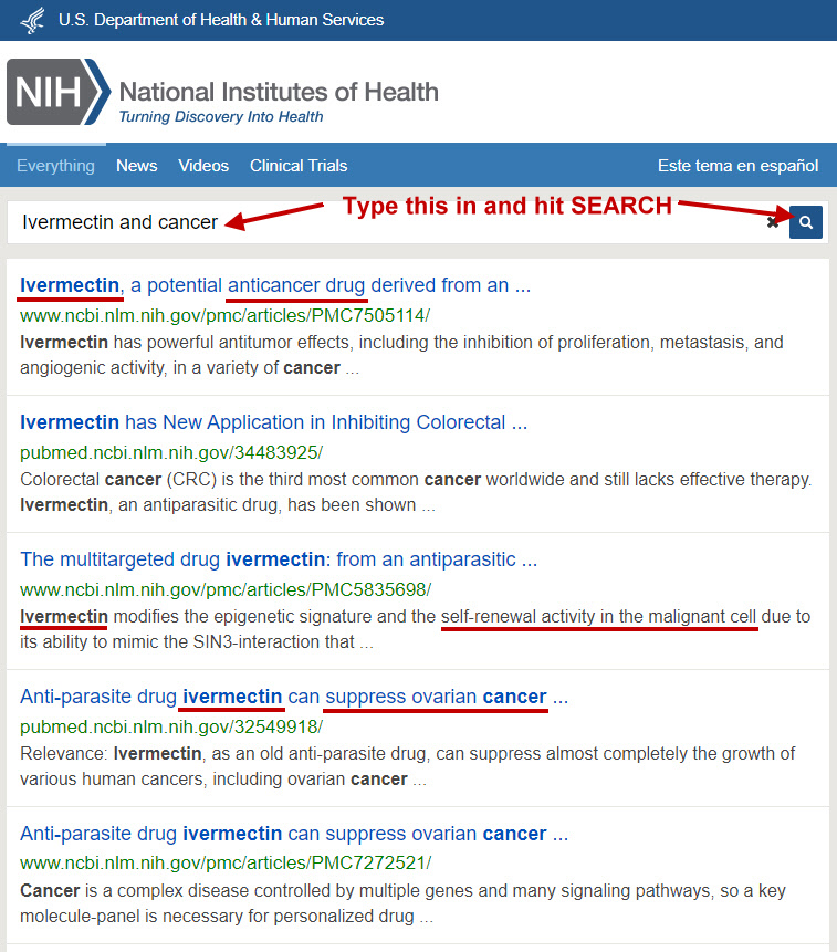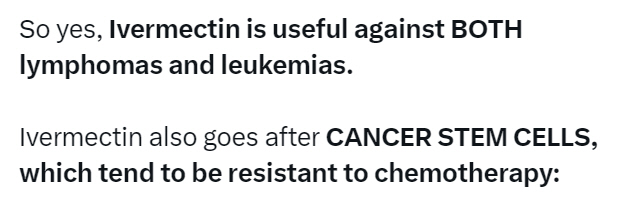 They are counting on people being too lazy to go look this stuff up. If you go to NIH.GOV and search for "Ivermectin and Cancer", there are pages of studies showing that Ivermectin cures Cancer.