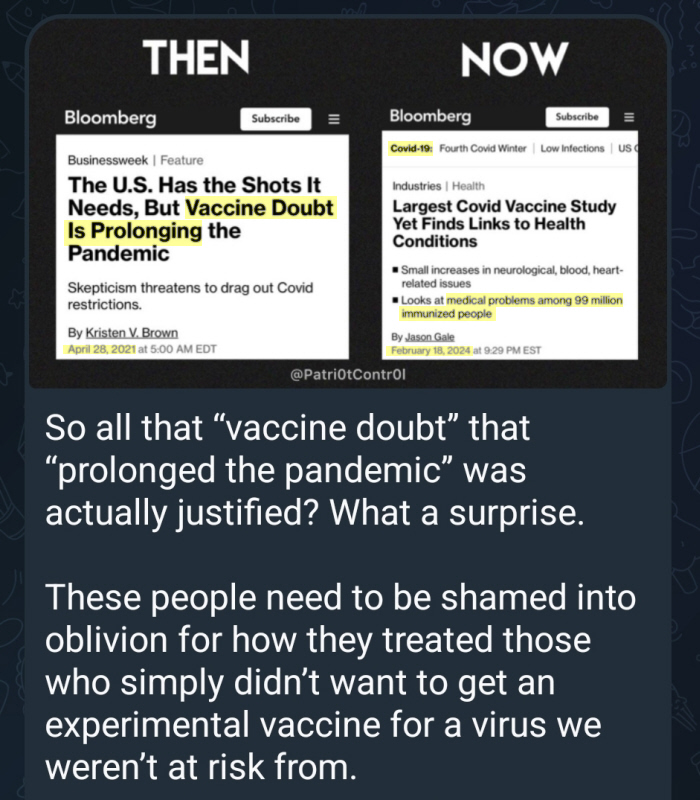 take the Covid Jab? By Lying... A lot. And they had the Mockingbird Media helping (20 Seconds) Download this video: Right Click and select "Save Link As..." Then they have no reason to fear the unvaccinated As they are vaccinated and can't get Covid now They cannot get Covid, because they are vaccinated At least that is what we were told So why do they care, if someone is unvaccinated? But it turned out, that the vaccinated Continued to get Covid, even after getting vaccinated While the Unvaccinated only got Covid once, and then never again We who did not get vaccinated We could see the lies We were concerned about potential side effects Unknown Side-Effects Experimental Shot Experimental mRNA Potentially altering our DNA ALL to protect us from a disease... That has a 99.99% survival rate (3-1/2 Minutes) Download this video: Right Click and select "Save Link As..."