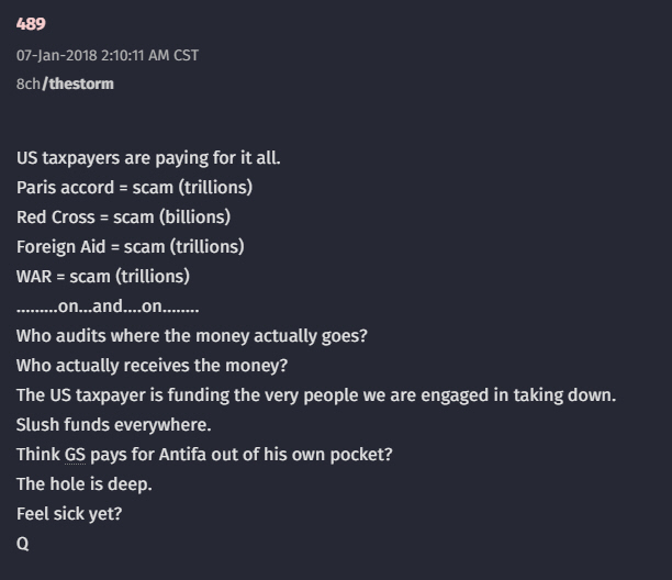 GS = George Soros The Cabal uses your money (taxes) to fund their attack on you and your country... whatever country you live in. The Sting has been to get the Deep State Cabal to expose themselves to the public and weed out who is involved with the corruption. Look at what Trump has done: