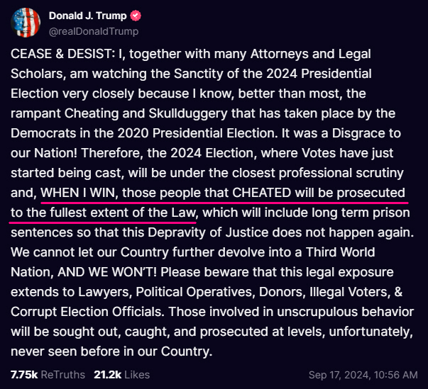 Trump continues to warn the deep state actors in his speeches and his posts: Will they listen? Some will. Many won't.