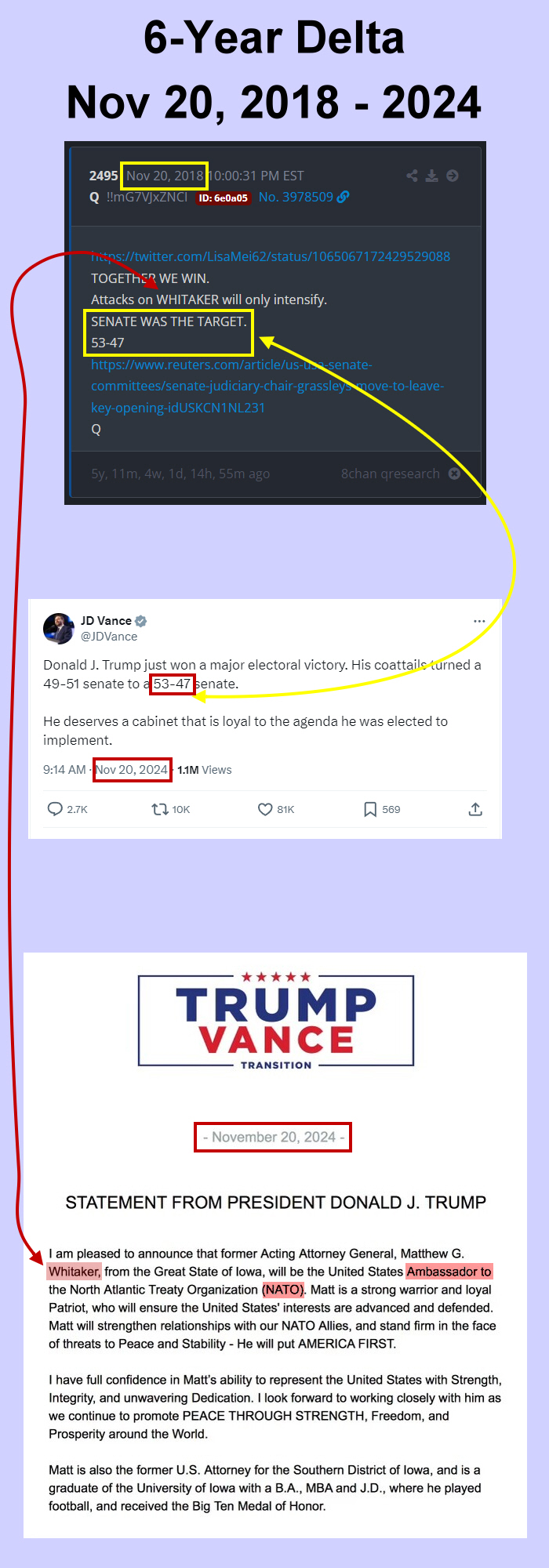 6 Year Delta Q posted the following in 2018 on Nov 6th. It was a message to the Anon's for the day after the 2024 Election, congratulating and encouraging the Anon's on Trump's win in 2024.
