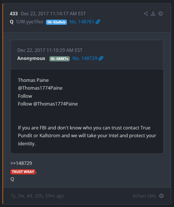 Q told us to Trust Wray in multiple q drops. The post above is the first. The credit for catching the following, goes to Anon Joe Rambo: