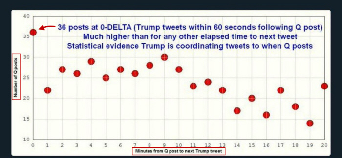 Body doubles in politics are more common than anyone ever thought. Back to Feinstein: Some suspect that Feinstein likely died a few years prior, and a body double was in play. What Q may have done is put some of the Cabal into submission, forcing them to finally make the announcement that Dianne has passed, and forced them to do it on a specific day or week. Consider the Jimmy Carter Story: Jimmy Carter went into hospice in February of 2023. When people go into hospice, they usually pass away within a week or two. But Jimmy was in hospice for just under 2 years. Jimmy most likely passed away in 2023, but the Cabal saved the announcement for a time when they need to clog the news feeds. They did this all the time during Trump's presidency. Trump would do something great, so the Cabal would clog the news feed with the passing of someone famous. The person passed weeks, months, or years prior, but they held the story for the sole purpose of clogging the news feed when needed. Reverse Delta's A reverse delta is when someone famous, like Trump, or one of Trump's partners, posts something on social media, on the exact day of a Q drop with identical subject matter. When Trump would do this, it tells the Anons to focus on this topic, or that this Q-Drop is about to become reality. Trump has done so many reverse deltas that it is no longer statistically possible that Trump and Q are not one in the same or working together. An Anon kept track, and by December 19, 2019, Trump had performed 36 Zero-Second Deltas from a Q post. The Q post and Trump's Tweet were posted/sent at exactly the same time and related to the same topic. This Anon posted the graph they created on the Q board. And Q responded.