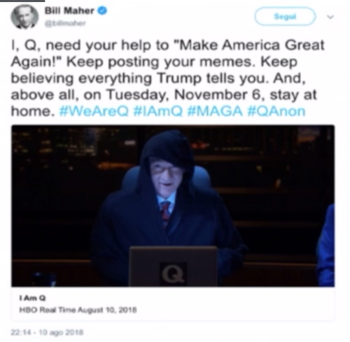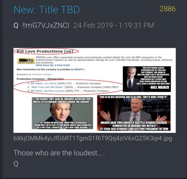 Bill Maher owns a company called: Kid Love Productions On August 10, 2018, Bill Maher makes fun of Q, Maga, and Anons: