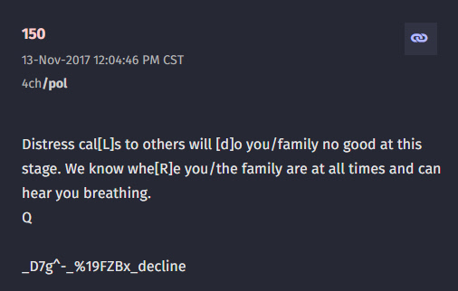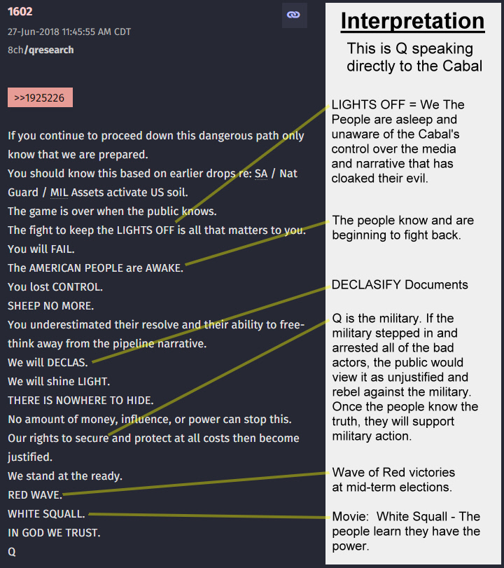 Direct CommsAnd sometimes, Q would speak directly to the CABAL as shown below:
