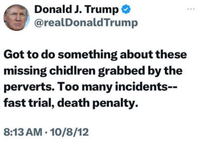 Bill Maher: "I was afraid for my own well-being. I thought I could wind up in Guantanamo Bay. I think I still could. I'm afraid of Trump on a very personal level. I don't know what he would do in a second term." Bill is feeling very nervous about ending up in jail or worse. It's no wonder Bill is so against Trump. Trump continues to voice his opinion about pedophiles: "Speedy trial and then the death penalty."