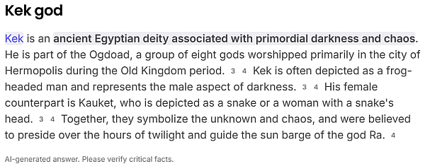 Every time the word "Kek" is used to call something funny, it disrespect's the (lower case g) gods and is part of the Spiritual Warfare, that is currently taking place. Ba'al, Satan, et al, are losing, and they know it. Saying Kek as a joke, rubs their nose in it. And they are powerless against the Kingdom of Christ.
