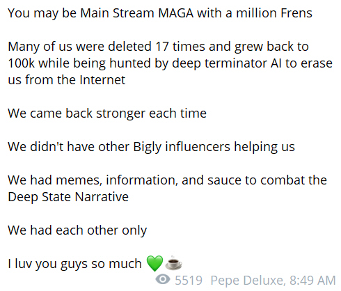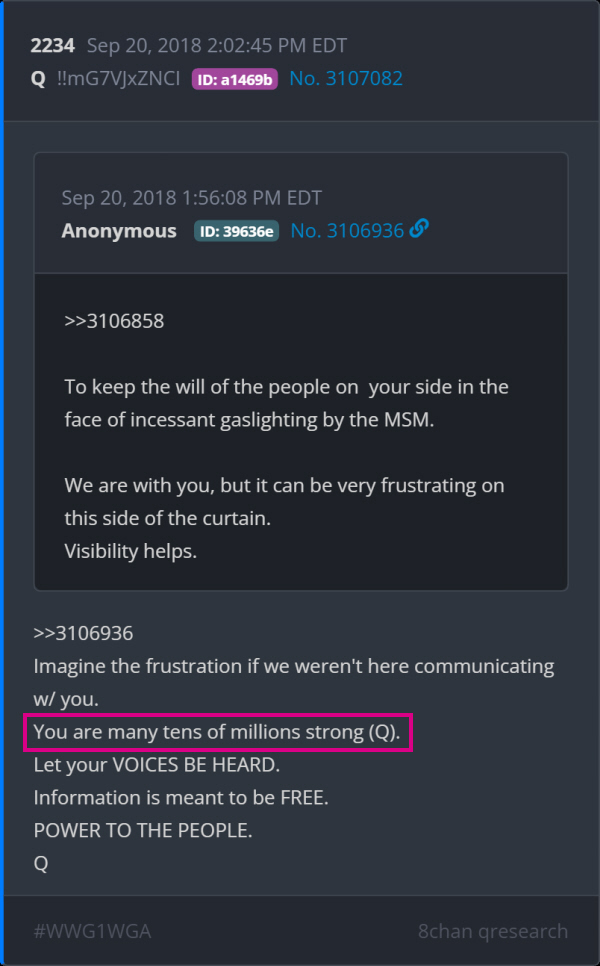 Q created an army of digital soldiers, so great in number, we are everywhere, like an army of frogs.