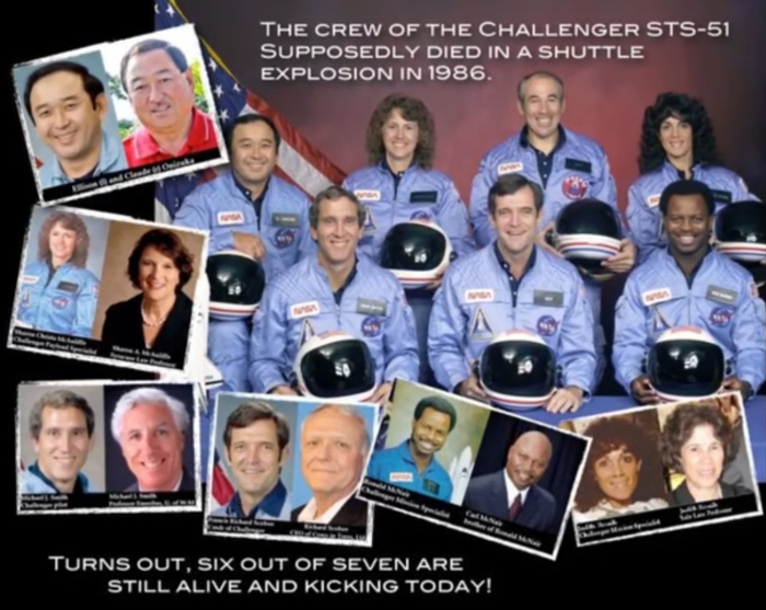 It's interesting that every member of the tragic Challenger explosion has a doppelganger (a look-alike) who coincidentally has the exact same name and birthdate and is still alive today...