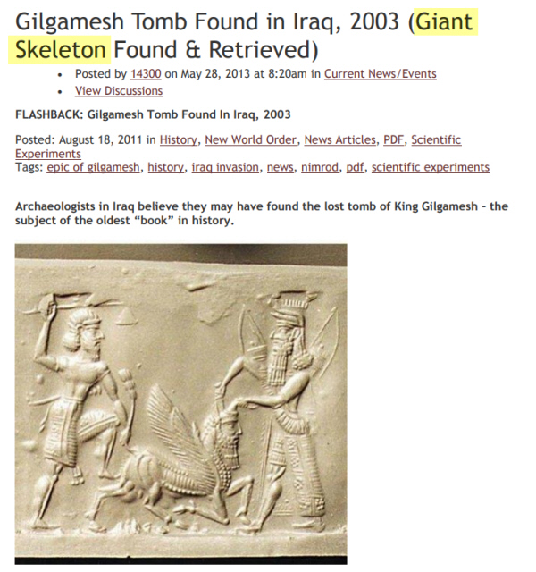 2 Pages Gilgamesh.PDF Story of Gilgamesh (4 Minutes 31 Seconds) Download this video: Right Click and select "Save Link As..." Hillary Clinton Attempts Getting Gilgamesh's Remains (2 Minutes 46 Seconds) Download this video: Right Click and select "Save Link As..." City of Urruk - Gilgamesh - Iraq War (4 Minutes 42 Seconds) Download this video: Right Click and select "Save Link As..." It makes one wonder... The Cabal, the Luciferians, the secrets... All kept from us for a reason. Why would the Cabal want the historical records of Giants erased from history? Could it be that it validates the Bible? And they don't want the Bible to be believed? There are a lot of questions... A lot that has been hidden from us. If all this is true, then there have been cannibal, satanic practices since way back to the beginning... At various points in Earth's history, these satanic people were out in the open and were in power. The common people (Non-satanic) knew there were those who ate human flesh and drank human blood, so they kept their children close to them. Enoch was also told by the angels that the Son of God/Man would come and the Luciferians would hate him, for he was the only one who could stop them. Jesus sacrificed his body and his blood to stop the Luciferians.