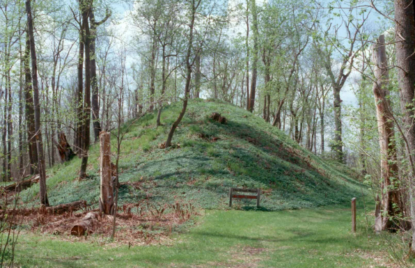 There is one of these mounds near my hometown in Minnesota, where the Dakota and Ojibwe lived. Both of these tribes either burn their dead in their hut or tie them to planks high in a tree or on a stilted platform.