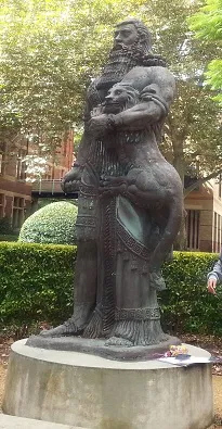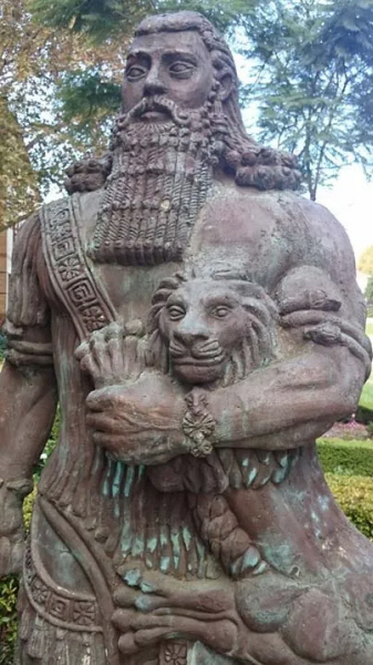 Statue of Gilgamesh (a Giant) holding his pet lion