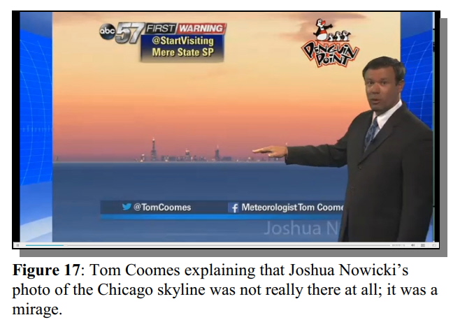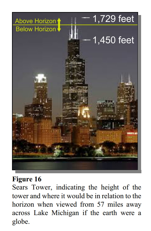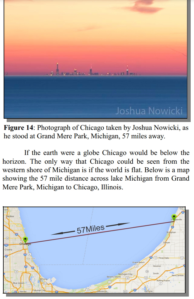 The photograph of Chicago above went viral on the internet, creating a buzz about a Flat Earth. So much so that the local meteorologist, Tom Coomes, put the photo on his news segment and explained how this could happen: