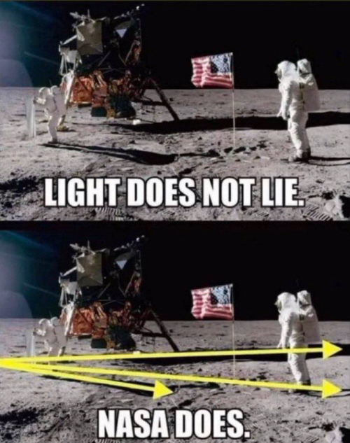 The sun is 93 million miles away. At that distance, the shadows would appear to be perfectly parallel to each other. Flat earth conspiracy theorists believe this is a staged moon walk, with stage lighting and the light source is probably only 20 feet away, making the shadows to be not parallel.